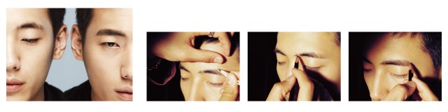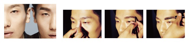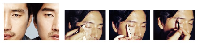 1 먼저 족집게로 미간 쪽 잔털을 제거하고 눈썹 전체에 투명 파우더를 살짝 덮는다. 파우더가 없다면 기름종이로 유분이라도 닦아낸다. 남자 피부는 유분이 많아서 전체적으로 눈썹을 그려야 할 경우 펜슬이 뭉칠 수가 있다.