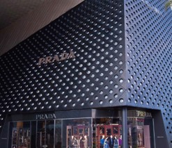 2011년 5월 싱가포르 파라곤 쇼핑몰에 새로운 프라다 매장이 자리했다. 인테리어는 브랜드의 역사적인 소재들을 사용해 프라다만의 전통성과 현대적 재해석으로 표현됐다. 녹색 캔버스를 사용해 벽면을 장식했고, 아이보리 사피아노 가죽을 사용한 디스플레이 장도 눈에 띈다. 남성 매장은 로즈우드 소재의 클래식하면서도 우아한 가구들과 소파 그리고 스틸 소재의 매치가 어우러져 있으며, 여기에 프라다만의 고유 소재인 검은색 사피아노 가죽으로 포인트를 주어 중후함을 더했다.