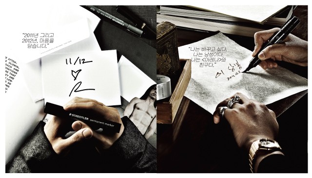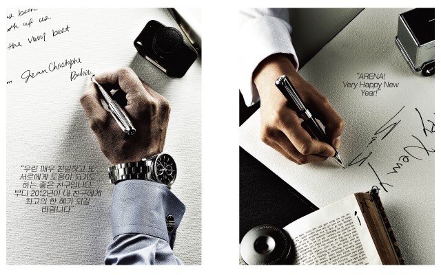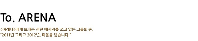 <아레나>에게 보내는 신년 메시지를 쓰고 있는 그들의 손.