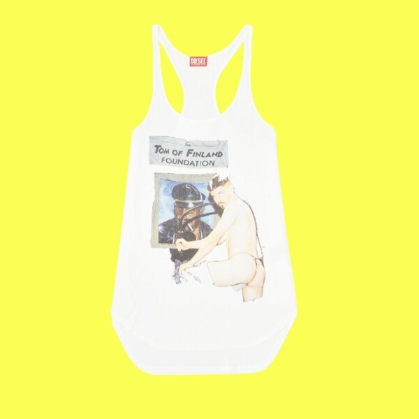 퀴어 일러스트레이터 톰 오브 핀란드(Tom of Finland)의 아카이브에서 엄선한 작품을 프린트해 성적 자유에 대한 가치를 시각적으로 풀어냈다. 톰 오브 핀란드 재단의 협조 아래 제작된 이 젠더리스 롱 탱크톱은 디젤 프라이드 시즌을 기념해 공개된 특별 캡슐 컬렉션 중 하나다. 뒷면의 헤링본 테이프 디테일에는 톰 오브 핀란드의 철학이 담긴 문구가 새겨져 있다. 표현의 자유, 몸의 해방, 그리고 스타일의 경계를 허무는 태도까지. 그 모든 메시지를 말 대신 시선으로 전한다.