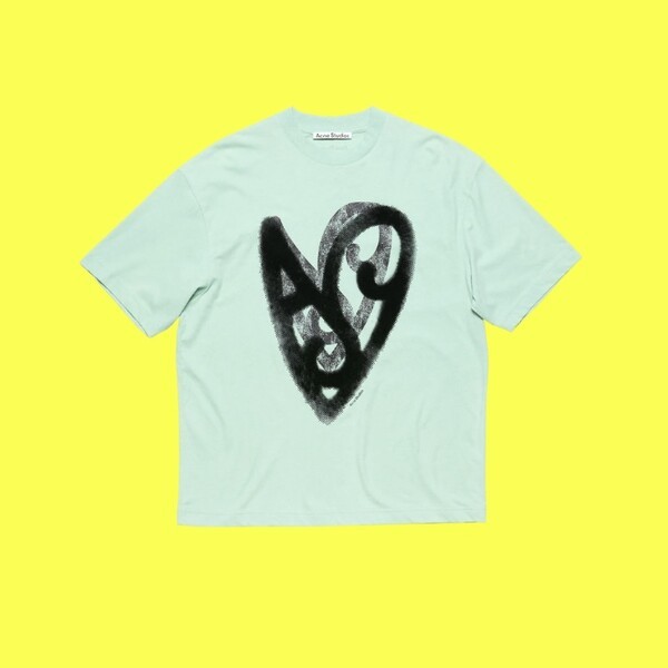 마치 무심하게 검은색 스프레이로 사랑을 표현하기 위한 낙서를 남긴 듯하다. 연한 바다 빛 캔버스 위 검은색 스프레이로 흩뿌린 듯한 하트 모양 로고가 티셔츠를 장식한다. 직선도, 대칭도 없는, 어쩌면 일부러 어긋난 형태로. 그래서 오히려 더 솔직하고, 자유롭다. 감정을 억누르지 않고 과장하지도 않은 채 담담하게 전하는 이 하트를 넣은 티셔츠는 사랑을 가장 쿨하게 표현하는 방식일지도 모른다.