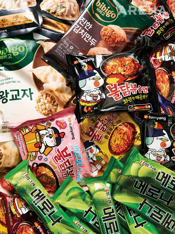 99억8000만 달러. 작년 한국 농식품 수출 실적이다. 농식품 수출 1위 품목은 라면으로, 12억5000만 달러를 달성했다. 재작년 대비 31.1% 상승한 수치다. 쌀 가공식품 또한 재작년 대비 38.4% 성장해 3억 달러를 기록했다. 농림축산식품부가 발표한 숫자가 아니더라도, 지금 K-식품이 전 세계에서 인기가 높다는 걸 우린 체감할 수 있다. 미국 뮤직 페스티벌에서 불닭볶음면 부스가 이슈를 끌고, 해외 케이콘 행사장에서 비비고 만두를 만날 수 있다. 요샌 눈 깜짝할 사이에 세상이 바뀐다지만, 어느새 이렇게 K-식품이 인기를 끌게 된 걸까. 이쯤 되면 하나의 콘텐츠로 조명할 수 있겠다 싶었다. K-식품이 얼마나 전 세계에 퍼져 있는지, 대표 K-식품들은 어떻게 세계를 주름잡게 됐는지, 앞으로 K-식품의 루키로 등극할 제품은 뭐가 있을지. 군침 삼키고 알아봤다.