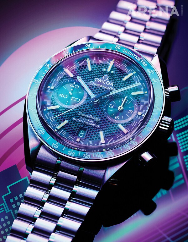 태생 자체가 스피드를 겨루는 모터스포츠를 위해 탄생한 컬렉션. 그중 수퍼 레이싱 모델은 명쾌한 이름만큼 디테일도 명확하다. 고성능 스포츠카에 사용하는 허니콤(벌집) 패턴을 적용한 다이얼, 레이싱 스타일의 미닛 트랙, 블랙과 옐로 포인트는 자동차 계기반과 레이싱 플래그가 떠오르는 건 당연한 일. METAS 인증받은 칼리버 오메가 9920을 탑재해 본업인 정확한 시간 계측도 훌륭하다.