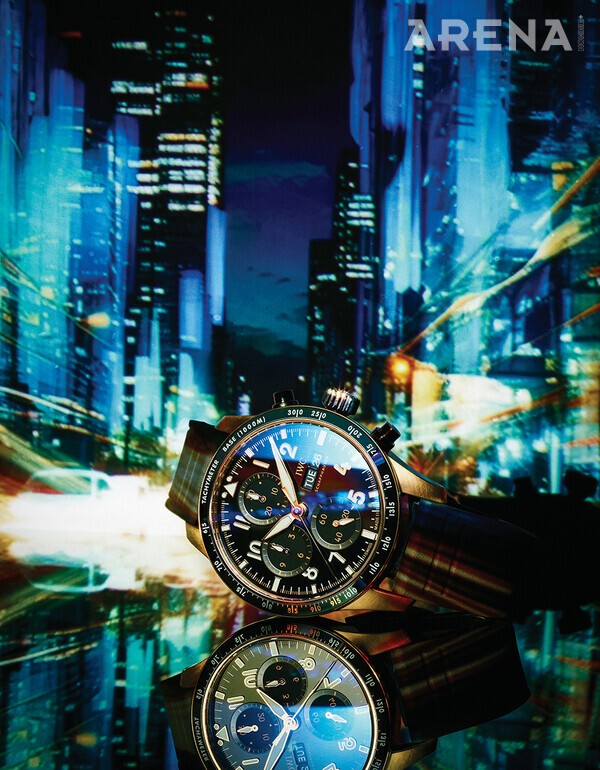 6월 25일 개봉을 앞둔 영화 <F1 더 무비>의 주인공, 신인 드라이버 조슈아 피어스를 연기한 배우 댐슨 이드리스의 손목에서 눈에 밟히는 시계. 이미 크로노그래프 모델로 명성이 자자한 파일럿 워치 크로노그래프에 세라믹 소재의 타키미터 스케일 베젤을 더해 하늘에서 육지로 완벽하게 적응했다. 무브먼트 역시 동일한 인하우스 셀프와인딩 크로노그래프 칼리버 69385를 탑재.