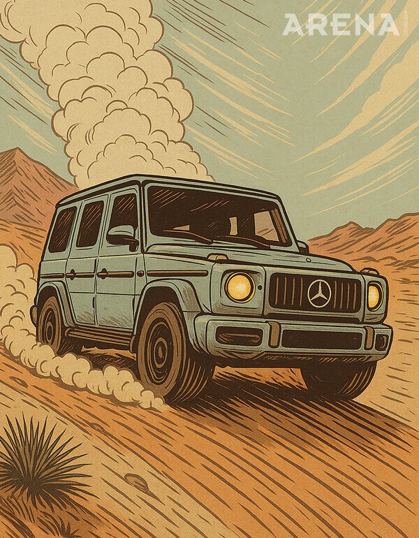 전기 파워트레인 품은 G-클래스다. 이름이 길다. 내연기관 모델도 여전히 활약하니 부연 설명이 필요했으리라. 아무튼 G 580 위드 EQ 테크놀로지(이하 G 580)는 반가운 모델이다. 전기차 시대에도 G-클래스는 존재할 것이라고 안도하게 했다. 외관도 크게 변하지 않았다. 전통을 이어 나가겠다는 명확한 의지였다. 그러면서 새롭게 설레게도 했다. 전기 파워트레인 품은 G-클래스만의 특징도 부여했으니까. G 580에는 전기모터가 네 개나 들어간다. 바퀴마다 하나씩. 각기 독립적으로 작동하는 전기모터는 풍성한 출력은 기본, 정통 오프로더로서 역량도 높였다. 특히 거의 제자리에서 회전하는 ‘G-턴’은 전기 파워트레인을 품었기에 구현할 수 있었다. 이 기능은 곡예 같은 재미 요소가 아니다. 험로에서 차를 돌리기 힘들 때 유용한 필살기다. 전기차 시대에도 G-클래스는 험로를 누빌 거라는 확신에서 적용한 기술이다. 만화적 상상력을 구현한 자동차답게 만화 스타일로 일러스트를 완성했다.