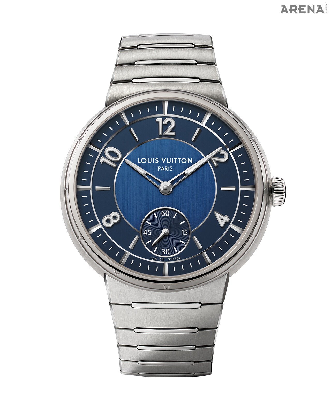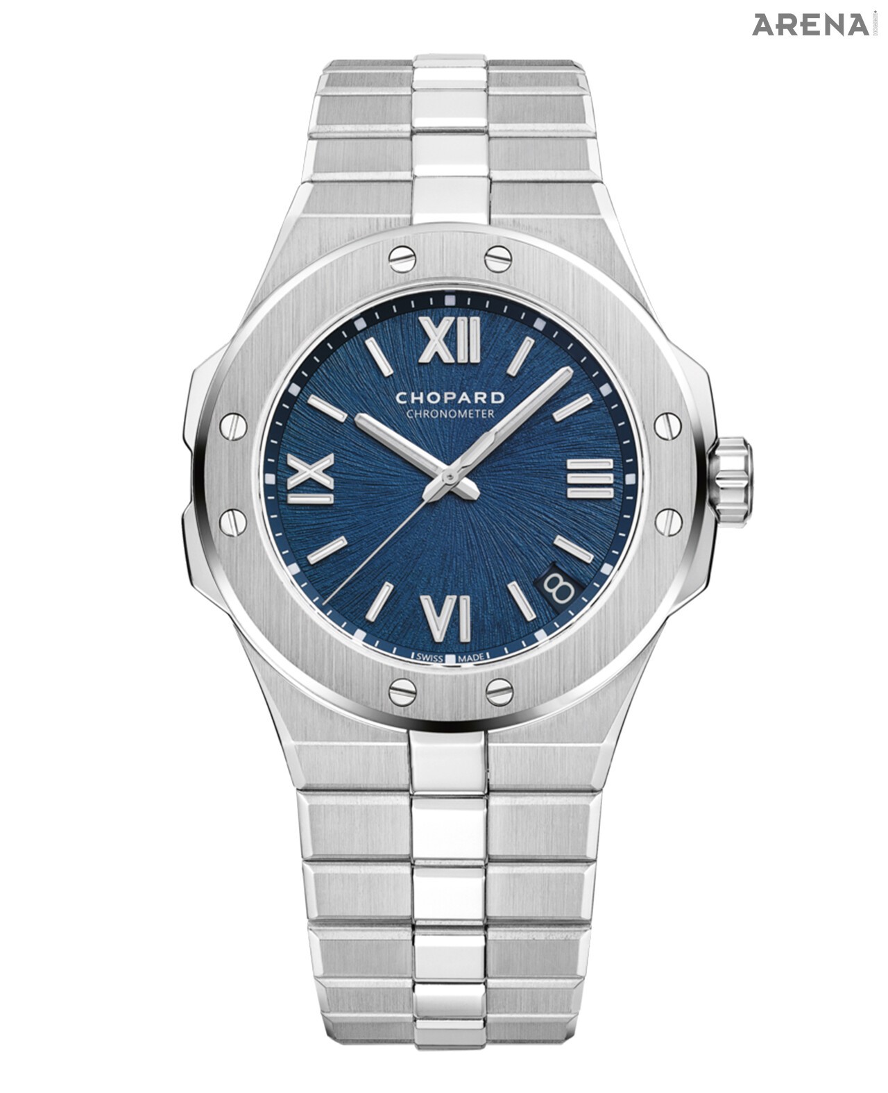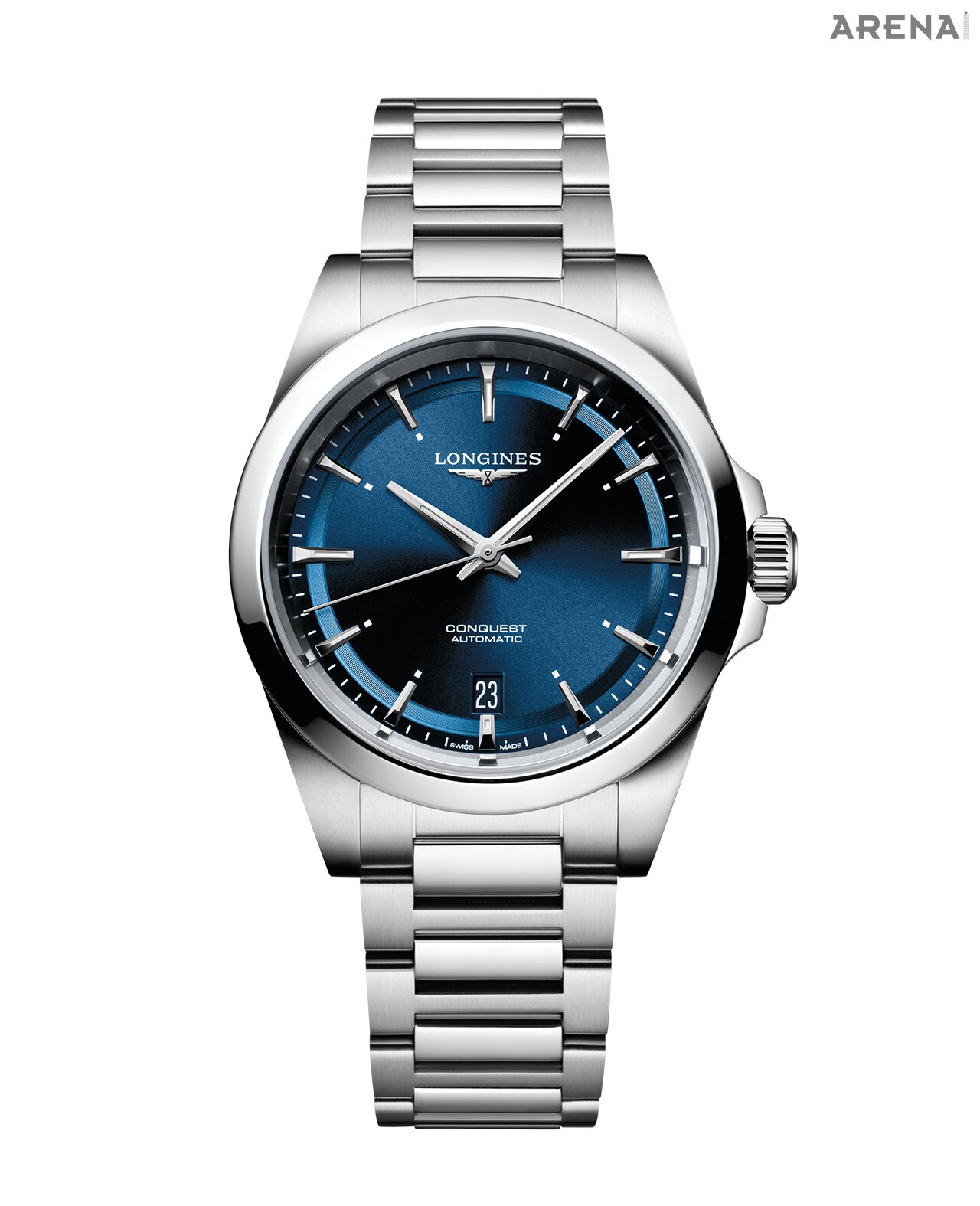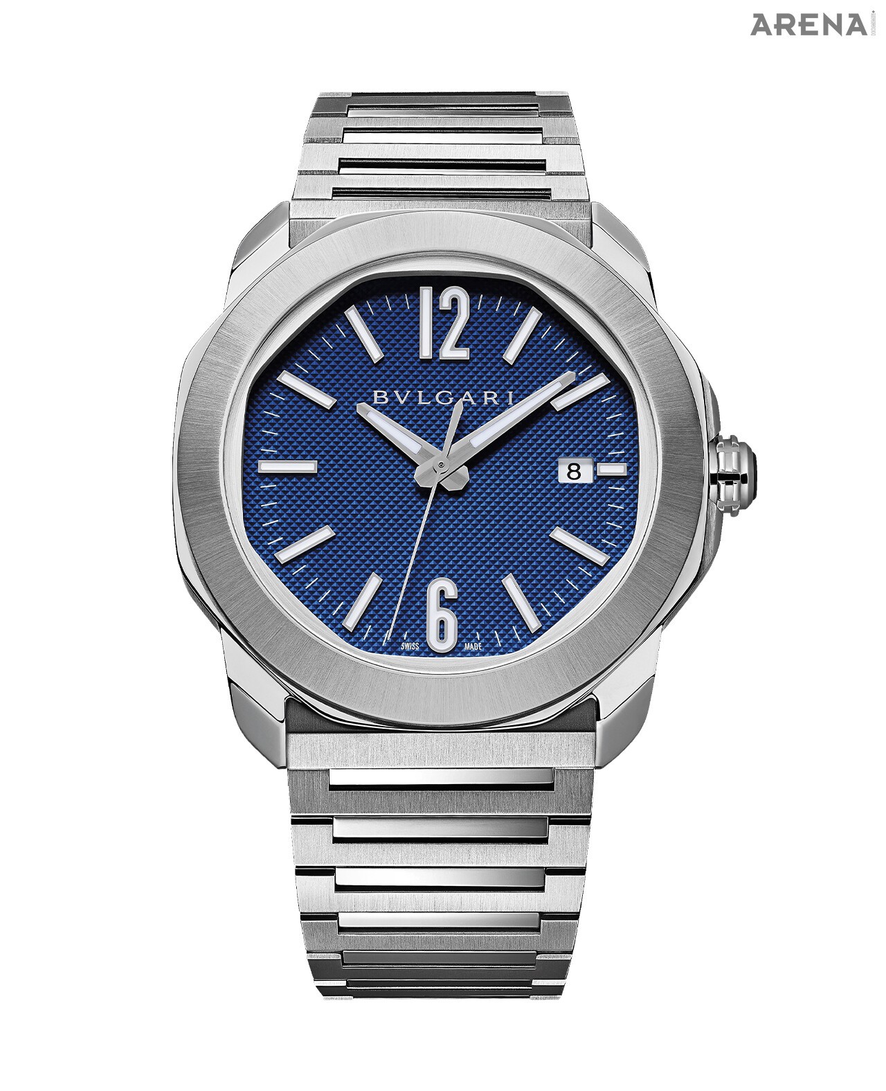 볼드한 케이스 디자인에 갈바닉 처리한 섬세한 블루 다이얼이 조화를 이룬다. 다양한 케이스 사이즈는 예물로 제격이다.