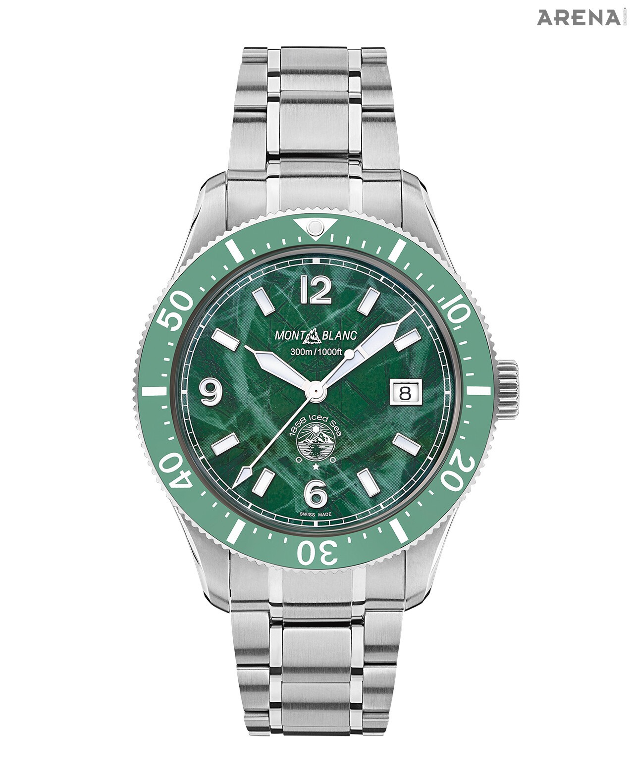 좀처럼 보기 힘든, 빙하의 심연을 표현한 글래시어 패턴 다이얼이 돋보인다. 일상 속 은은한 포인트가 필요하다면 그린 다이얼을 선택할 것.