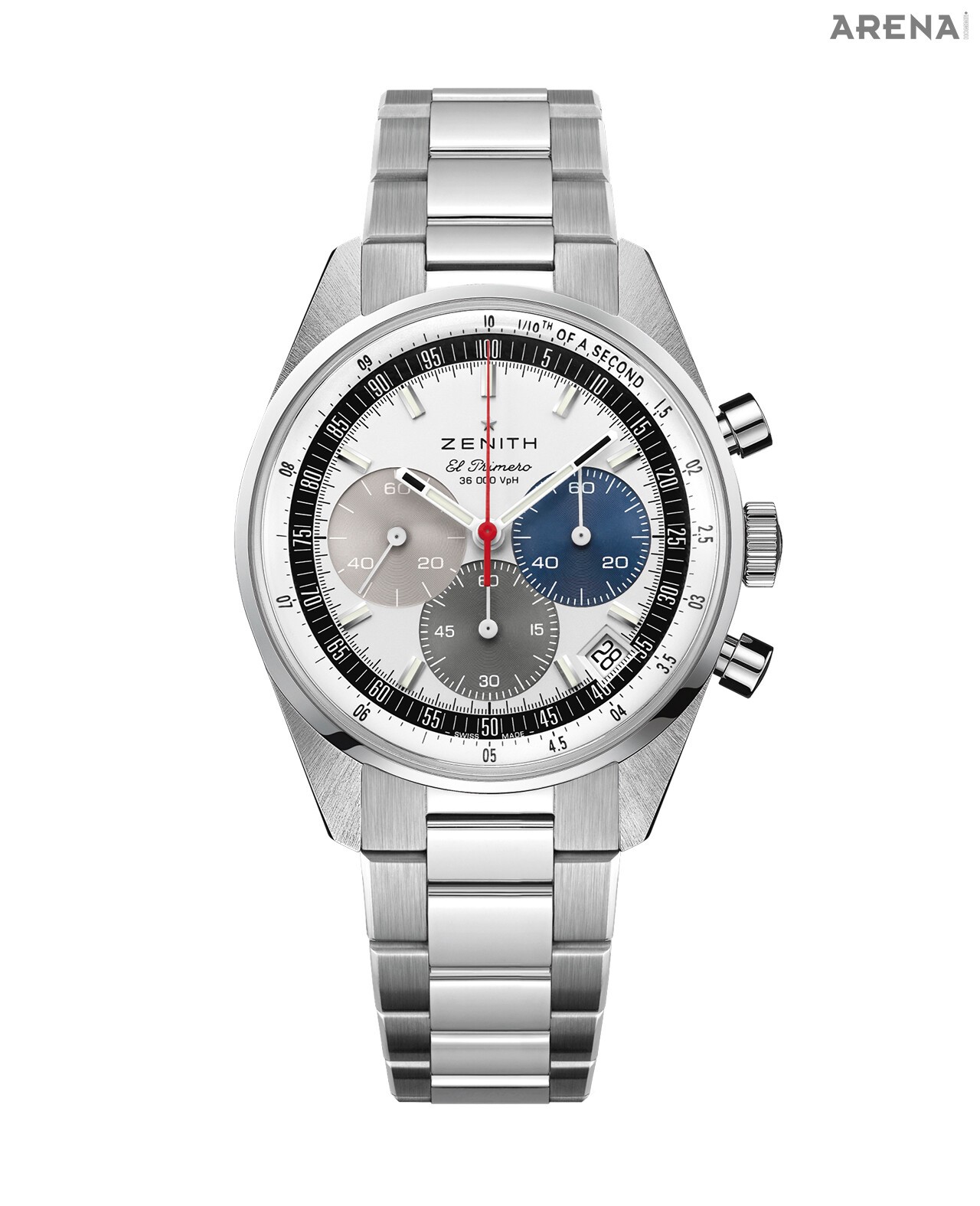 ‘피에로’라는 별명의 삼색 카운터와 레드 크로노그래프 세컨즈 핸드가 인상적. 크로노그래프 무브먼트를 대표하는 엘 프리메로의 가치도 빼놓을 수 없다.