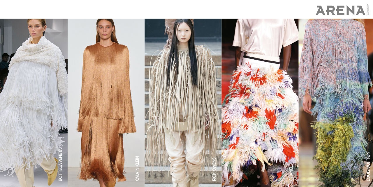 이번 시즌엔 런웨이를 내딛는 모델의 발걸음에 맞춰 옷차림이 유독 화려하게 살랑였다. 작은 움직임에도 큰 아름다움을 주는 프린지와 깃털 장식 덕분. 이러한 극적인 장면은 샤넬의 피날레에서 연출됐다. 모델 아와르 오디앙이 춤추며 마티유 블라지를 맞이한 순간은 많은 이들이 명장면으로 꼽았다.