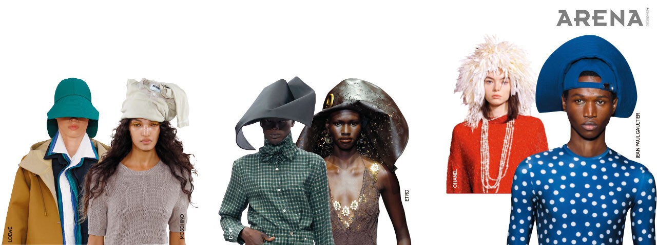 거대한 종이를 접은 듯한 디올, 칼라 티셔츠를 머리에 올린 모스키노, 볼캡의 범주를 벗어난 장 폴 고티에, 풍성한 프린지 장식을 머리에 얹은 샤넬까지. 명확한 카테고리를 분류할 수 없는 모자 혹은 예술적인 헤드피스 덕에 런웨이가 더욱 재미있고 풍성해졌다.