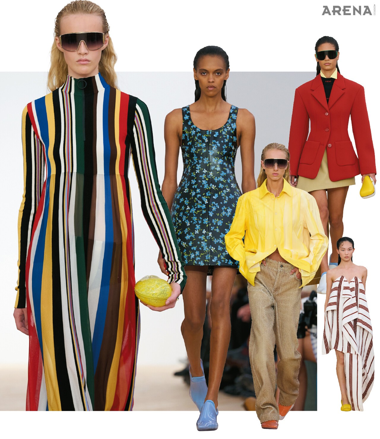 탐스럽게 익은 과일, 물과 땀에 흠뻑 젖은 낯선 얼굴들. 잭&라자로가 준비한 첫 번째 컬렉션의 티저는 뜨겁고 찬란한 여름의 장면들을 자연스레 떠올리게 했다. 예고편만으로도 강렬한 첫인상을 남긴 새로운 로에베는 색종이를 펼쳐놓은 듯한 명료한 색채와 그래픽적인 실루엣으로 관객의 기대를 충족시켰다. 비치 타월을 두른 듯한 드레스와 물에 빠진 옷을 대충 말려 구겨진 듯한 니트 톱은 마치 해변의 한 장면이 그대로 스며든 것처럼 보였다. 로에베를 말할 때 빼놓을 수 없는 공예 정신은 유리로 만든 클러치백과 스프레이 프린팅 기법으로 마감한 가죽 드레스에 담아냈다. 또한 쇼의 시작부터 흘러나온 파칭카 보이즈의 사이키델릭한 음악은 컬렉션 전체에 리듬감을 부여하며 극적인 분위기를 고조시켰다. 브랜드의 오랜 유산을 분명하게 활용한 쾌활하고 관능적인 컬렉션은 다음 시즌에 선보일 남성복을 기다려지게 한다.