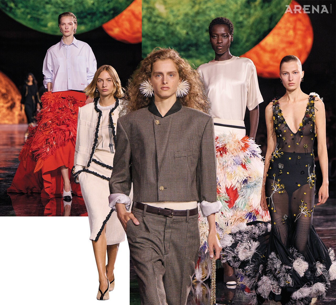 가브리엘 샤넬은 여성을 억업하는 코르셋에서 벗어난 자유롭고 편안한 여성복을 만든 최초의 디자이너다. 마티유 블라지의 샤넬에 대한 갑론을박은 여전하지만, 브랜드의 시작점을 복기한다면 이번 컬렉션은 고개를 끄덕일 만하다. 밝게 빛나는 행성들이 떠다니는 거대한 샤넬의 우주 속에서 쏟아져 나온 룩들은 일상과 맞닿아 있었다. 남성의 전통적인 복식을 샤넬의 비율로 재구성한 거친 마감의 수트 재킷과 셔츠, 그리고 유연한 드레이핑이 돋보이는 스커트와 드레스는 당장 입고 싶을 만큼 현실의 여성과 가까운 옷이었다. 언제나 타임리스한 스타일을 강조하는 샤넬의 가치를 담아 시간의 흔적이 깃든 빈티지한 2.55 백도 선보였다. 이 외에도 셔츠 안에 샤넬 체인으로 무게감을 더하거나 트위드에 자수 디테일을 장식하는 등, 샤넬의 익숙한 상징들은 마티유 블라지의 세계에서 현실감과 실용성을 유지한 채 다시 태어났다.