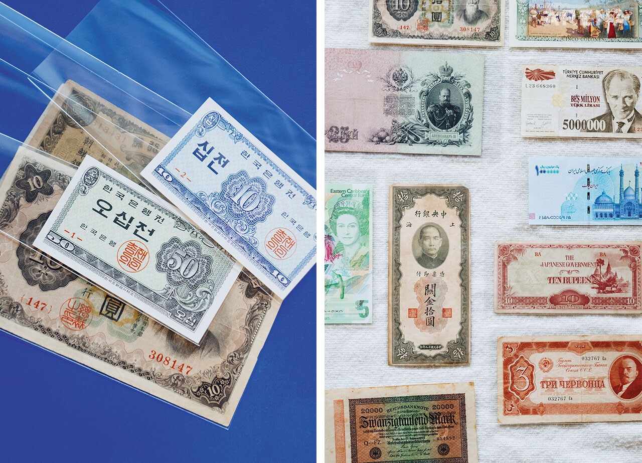 초등학생이었던 1990년대는 튀르키예에서 화폐 가치가 가장 빠르게 떨어지던 시기였다. 용돈을 받으면 곧장 환전소로 달려가 달러나 마크로 환전해야 했던 시절. 그때부터 다양한 외국 지폐에 관심을 가졌다. 외할아버지의 영향도 컸다. 사업차 58개국을 다닌 외할아버지는 자잘한 잔돈을 모아두셨는데, 그 모습을 보며 나도 지폐 컬렉션을 만들겠노라 다짐했다. 지금 갖고 있는 화폐는 대부분 언론사 특파원 시절 모았다. 여행으로는 가지 않을 법한 전 세계 각지를 돌아다니며 화폐를 모았고, 지금은 대륙별로 구분해 보관 중이다.
