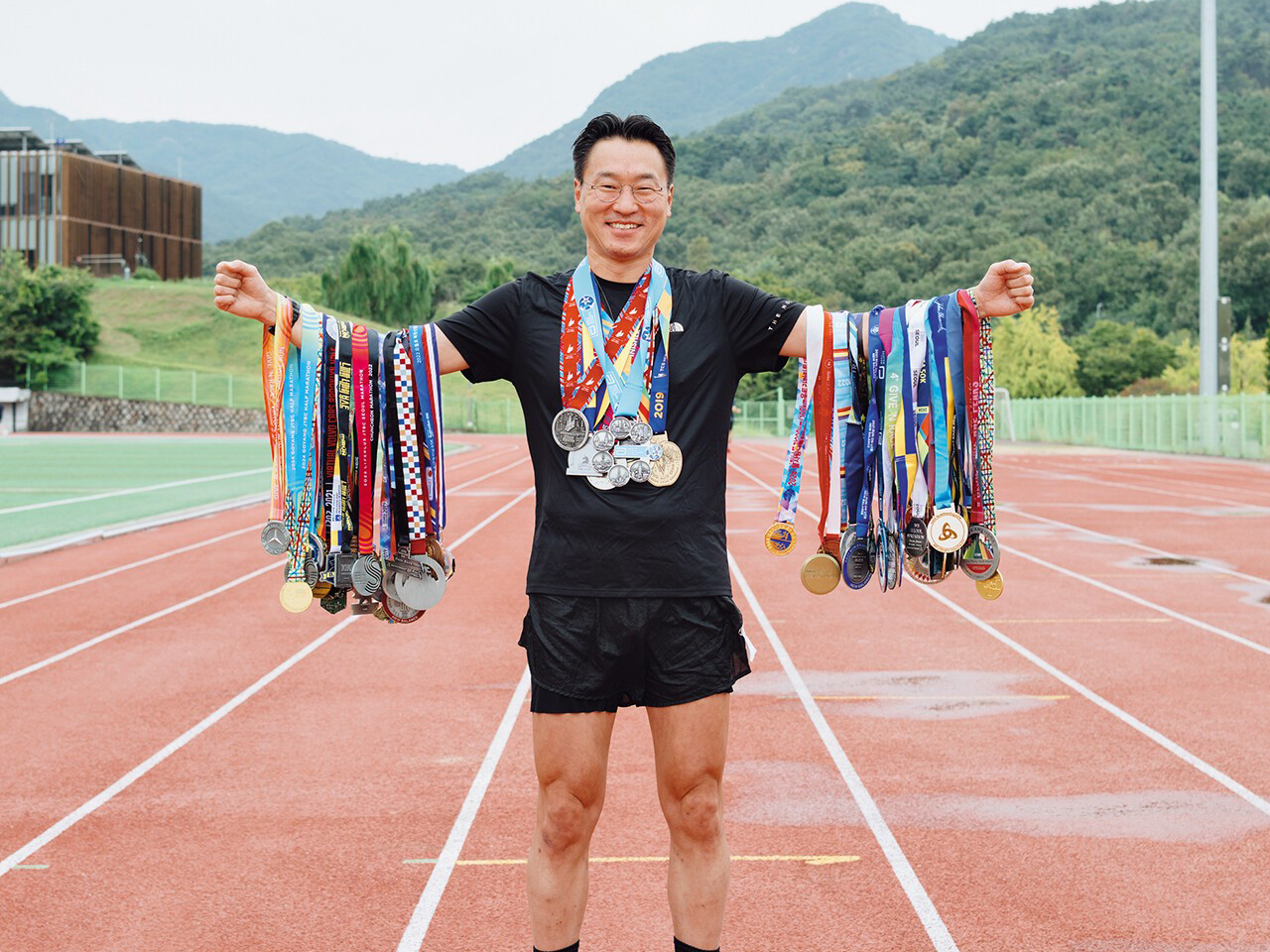 메달을 모으려고 마라톤을 시작한 건 아니다. 뛰다 보니 메달이 쌓이게 됐다. 가장 의미 있는 건 지난해 ‘물사랑 낙동강 200km 울트라마라톤대회’에서 획득한 메달. 국내 울트라 마라톤 대회 중에서도 가장 악명 높은 코스를 자랑하는데, 24시간 5분 걸려 1등으로 완주했다. 인생 첫 마라톤 메달(시애틀)과 첫 마라톤 1등 메달(낙동강)만큼은 평생 잊지 못할 거다. 요즘 러닝이 대세라지만, 내게 러닝은 유행도 훈련도 아니다. 그저 아침에 일어나면 세수를 하듯, 당연히 하는 일이 됐다. 메달 컬렉션에 꼭 추가하고 싶은 메달은 없다. 그저 오래 달리고 싶을 뿐이다.
