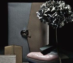 1 고사리색 가죽 아이패드 케이스 가격미정 토즈 제품. 2 수납공간이 다양한 올리브색 장지갑 52만9천원 유니페어 제품. 3 빗살 무늬가 들어간 바위색 반지갑 6만9천8백원 매니퀸 제품.