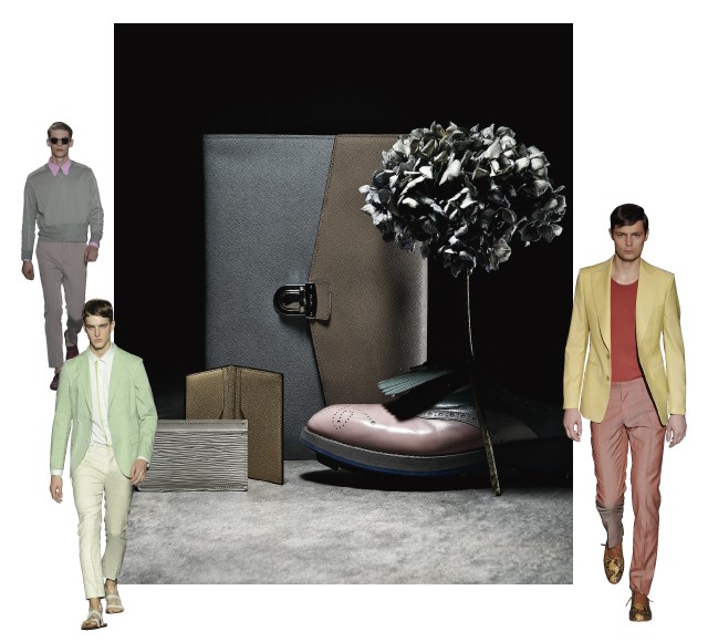 과연 분홍색 타이를 매는 것만이 파스텔 컬러를 소화하는 최선의 방법일까? 얼굴의 절반을 수염이 뒤덮고 있음에도 파스텔 컬러를 애용하는 에디터의 생각은 좀 다르다. 일반적으로 파스텔 컬러는 남자들이 버거워하는 색이기 때문에 양말이나 타이, 행커치프 등 소심하게 활용한다. 반대로 생각하면 이 방법을 활용하면 오히려 튀는 색이 옷차림을 더 부각시킬 수 있다. 따라서 파스텔 컬러가 어울린다면 좀 더 과감한 시도를 감행할 필요가 있다. 동시에 신경 써야 할 부분은 파스텔 컬러와 조합될 다른 색들이다. 묵직한 색을 추천하고 싶지 않다. 비슷하지만 밝기 조절만으로 충분히 안정적인 옷차림을 할 수 있기 때문이다. 이해를 돕기 위해 몇가지 모범 사례(컬렉션 사진)들을 추려봤다. 무엇보다 중요한 것은 파스텔 컬러 재킷을 입었다 할지라도 스터드 박힌 가죽 재킷을 입었을 때처럼 행동해야 한다는 것이다.