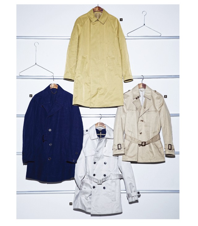 1 군더더기 없이 깔끔한 디자인이 멋스러운 H라인 트렌치코트 20만원대 아크네 by 에크루 제품. 2 품이 낙낙한 데님 소재 트렌치코트 가격미정 버버리 프로섬 제품. 3 짧은 기장으로 캐주얼하게 입을 수 있는 베이지색 트렌치코트 가격미정 스튜어트 Ⅱ by 폴 스튜어트 제품. 4 물 빠진 회색빛 트렌치코트 가격미정 아르마니 익스체인지 제품.
