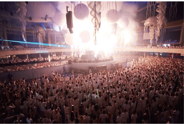 돔 엑스포 안으로 들어가자 바닷속이었다. 바다 생물을 연상하게 하는 구조물들이 하늘에 떠 있었다. 중앙에 DJ 부스가 신전처럼 솟아 있고, 하얀 옷을 입은 사람들이 물처럼 물고기처럼 흘렀다.