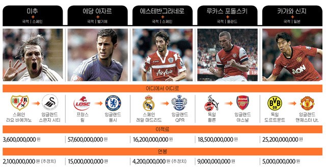 올 시즌 잉글랜드 프리미어리그로 이적한 선수 중 박지성, 기성용, 박주영과 두고두고 비교될 선수들의 활약상을 분석했다. 체크!