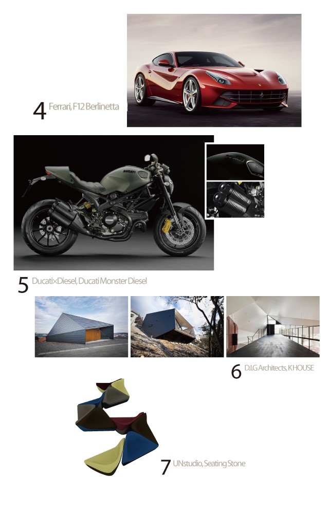 F12 베를리네타는 세상에서 가장 빠른 페라리다. 제로백 3.1초에 최고속도는 340km/h다. 하지만 차는 기술보다 겉모습으로 압도하는 법이다. 페라리는 차를 예술 작품으로 만드는 회사다. F12 베를리네타는 페라리의 전통을 계승했다. 전체적으로 FF에 가깝기는 하지만 좀 더 역동적인 캐릭터 라인과 458이탈리아의 날카로움도 갖췄다. 강하게 파인 옆선은 페라리 모델 중 가장 공기역학적인 디자인임을 입증한다. 가격 5억원대.