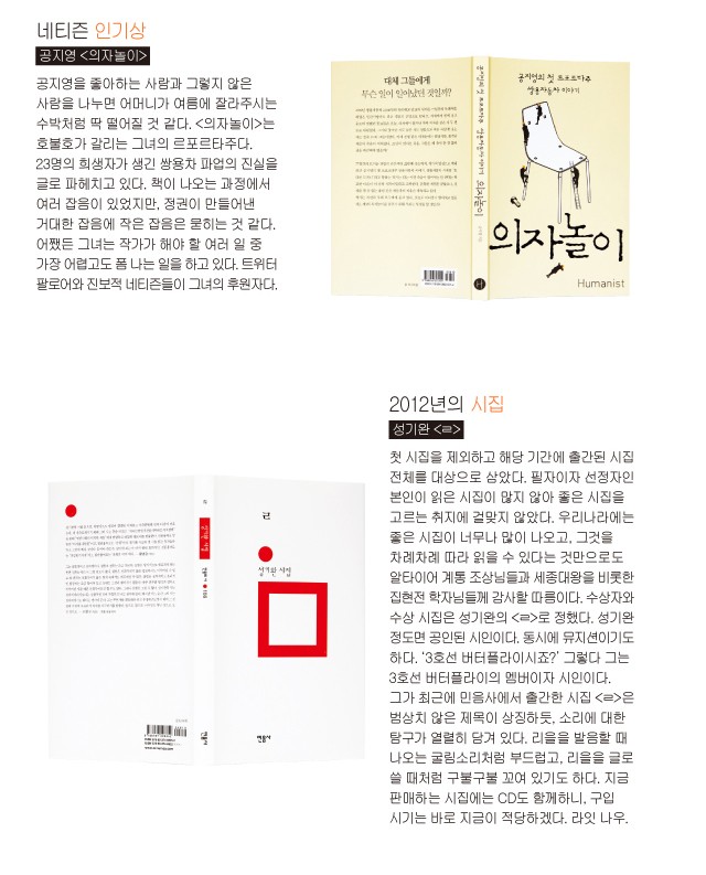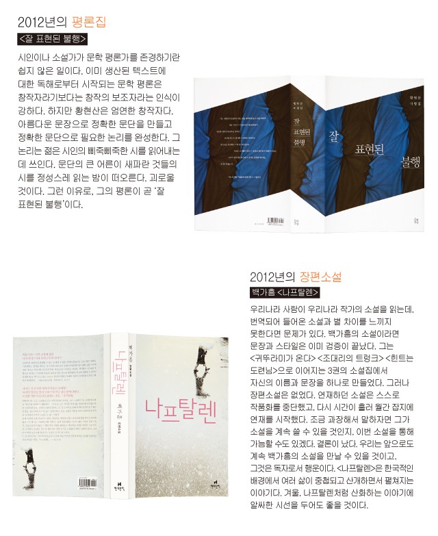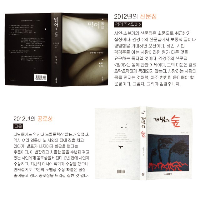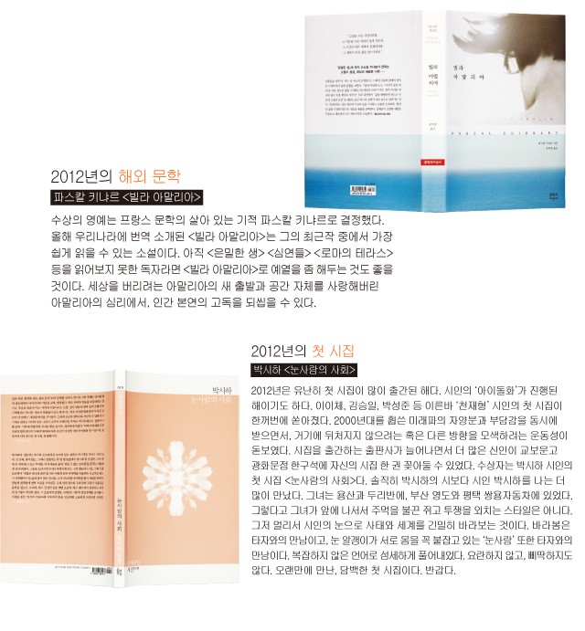 이전 기사보기 다음 기사보기 아레나 문학상 글자크기 설정 가 가 기사의 본문 내용은 이 글자크기로 변경됩니다. 스크롤 이동 상태바 미분류기사 아레나 문학상 입력 2012.12.29 11:49 댓글 0 글자크기 설정 가 가 기사의 본문 내용은 이 글자크기로 변경됩니다. 숱한 시상식들이 끝났다. 불야성은 사라졌다. 돌아보니 아무도 문학에 관심을 갖지 않았고 문학가를 단상에 올리지도 않았다. 그래서 <아레나>가 2012년의 작가를 여기 불렀다. 이 기사를 공유합니다 키워드 #작가 저작권자 © 아레나옴므플러스 무단전재 및 재배포, AI학습 및 활용 금지