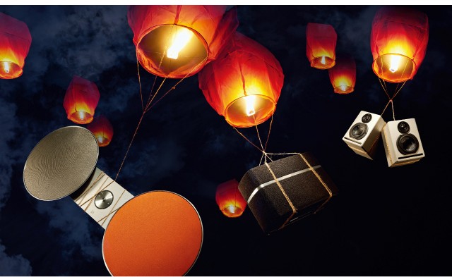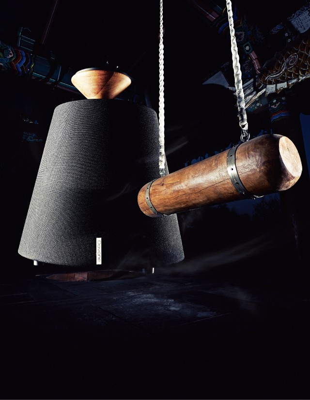 데본, 모조 종 모양을 닮은 북셸프 스피커다. 타원형이라 소리가 사방으로 퍼지기 때문에 위치와 상관없이 자유로운 음악 감상이 가능하다. 가격미정 오디오갤러리 판매.
