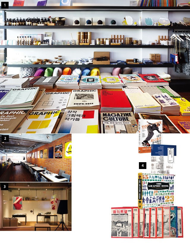 3 1984의 사무 공간. 앞으로는 편집하고 있는 서적과 브랜드를 하나씩 선정해 팝업으로 브랜드 스토리를 보여줄 예정이다. 4 1984에서 출간해 화제를 모은 패션과 그래픽 관련 서적, 토니 호크의 자서전, 그리고 전신인 희망사에서 출판했던 <주간희망>.