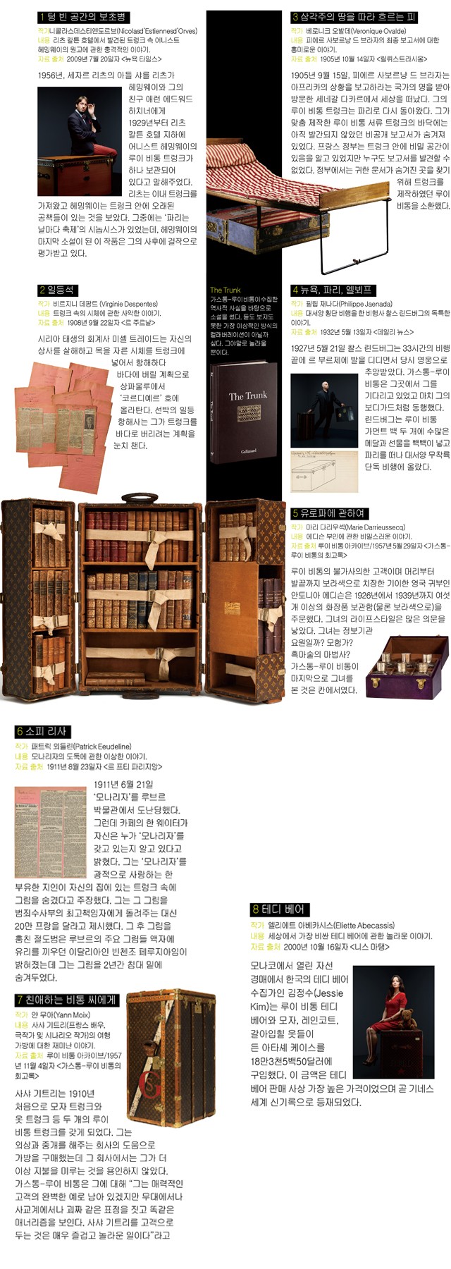 특별한 사물을 보고 이야기를 떠올린다. 셜록 홈스의 세심함으로 사물을 살핀다. 이야기의 방향은 정해졌고, 일사천리로 소설은 마무리된다. 프랑스를 대표하는 11명의 작가들이 루이 비통의 트렁크를 보고 떠올린 이야기들이 란 이름으로 출간된다. 총 11명의 작가가 함께한 아주 특별한 작업은 오늘날 파리의 상징적인 건축물로 평가받고 있는 루브르의 피라미드가 하마터면 완성되지 못할 뻔했던 일화에서부터 리츠 칼튼 호텔에서 발견된 루이 비통 트렁크 속의 어니스트 헤밍웨이의 원고 이야기, 기네스 세계 신기록으로 등재된 세상에서 가장 비싼 18만3천5백50달러 루이 비통 테디 베어 관련 에피소드(현재 제주 테디 베어 박물관 소장) 등 루이 비통 트렁크에 얽힌 11개의 이야기를 담아냈다. 이 작업이 가능했던 건 아니에르에 자리한 루이 비통 가문 저택에 차곡차곡 쌓여 있던 트렁크, 여행에 대한 특별한 이야기 덕분이다. 1900년대 초반, 트렁크 제작자로 유명했던 루이 비통의 명성을 잇는 손자이자 열정적인 수집가였던 가스통-루이 비통이 꼼꼼히 모은 자료들은 세기가 바뀐 지금, 각기 다른 개성 넘치는 11개의 소설로 다시금 태어났다. 그중에서도 어니스트 헤밍웨이와 관련된 소설은 유독 내 관심을 집중시킨다. 확실한 영감의 근원은 훌륭한 결과물을 낳는다. 아직 읽어보진 못했지만, 에디터가 이렇게 확신에 차 주장하는 이유다.