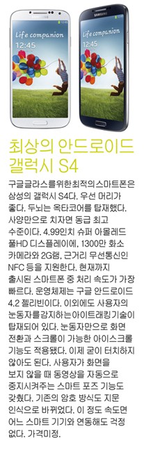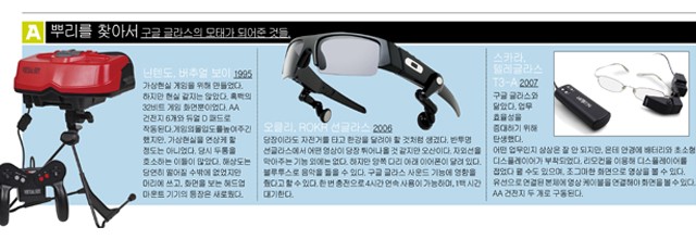 엄밀히 말하면 헤드업 디스플레이어다. 완전히 새로운 물건은 아니다. 하지만 기존 헤드업 디스플레이어보다 가볍고, 편하다. 오른쪽 상단의 작은 반투명창으로 화면을 볼 수 있다. 그리고 카메라가 탑재되었고, 마이크도 내장되어 있다. 소리도 들을 수 있다. 와이파이와 블루투스가 탑재되어 스마트폰과 연동도 된다. 단순히 보고 듣는 기능을 뛰어넘어, 입는 컴퓨터 역할을 한다. 그러니까 당신의 스마트폰이 안경에 들어갔다고 생각하면 된다. 앞으로 줄줄이 등장할 입는 컴퓨터의 서막을 알리는 걸출한 물건이다.